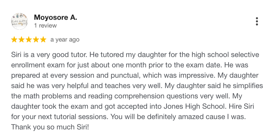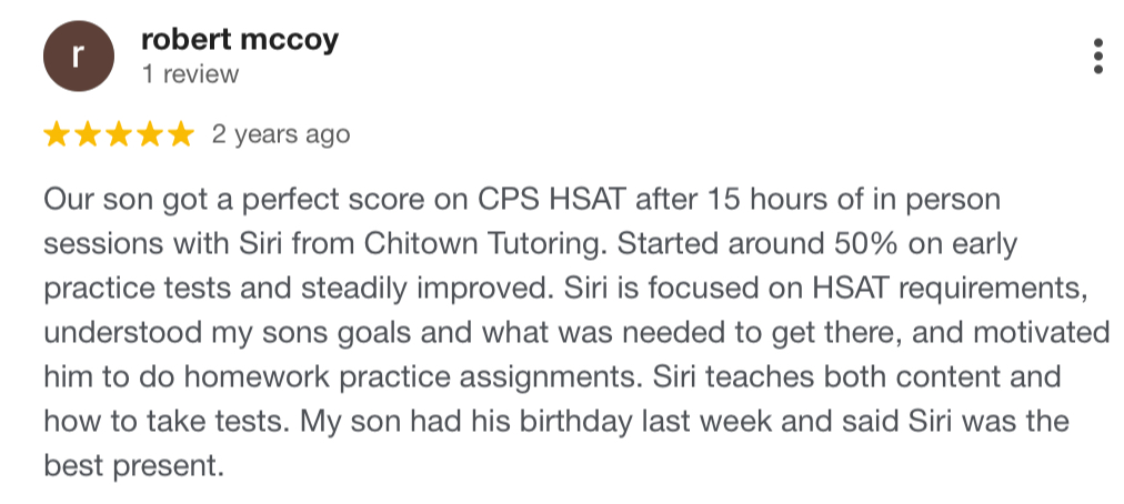 Over the past decade, my team and I have helped more than 100 students earn top percentile HSAT scores and gain admission to Chicago’s top selective enrollment high schools.